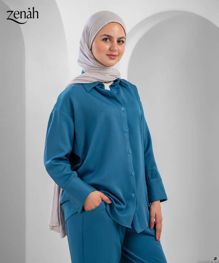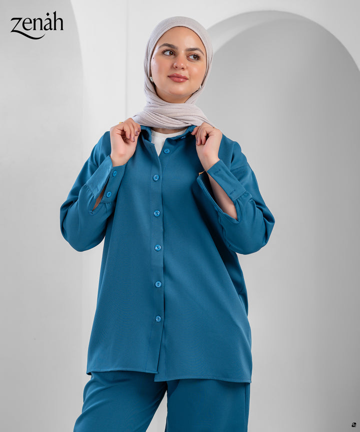 مصمم بأناقة وهدوء، مزين بتفاصيل لؤلؤية بسيطة تضيف لمسة راقية لإطلالتك. خامته مريحة وتصميمه محتشم، ما يجعله مناسب للدوام أو الاجتماعات أو الطلعات الخاصة.